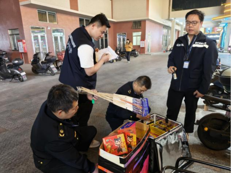2026年1月30日至1月31日,端州区安委办组织市公安局端州分局、区市场监督管理局、区城管综合执法局及相关街道,对沿江滨江公园一带、岩前半岛一片开展烟花爆竹“打非”专项执法行动。巡查期间,工作组向市民宣讲烟花爆竹安全管理相关法规,对非法售卖烟花的流动摊贩进行教育并收缴烟花,同时劝离部分非法燃放行为。2月2日下午,端州区“打非”工作组在沙岗新村开展烟花爆竹打非治违专项行动,于一处民宅收缴烟花爆竹5箱,抓获涉案人员1名。